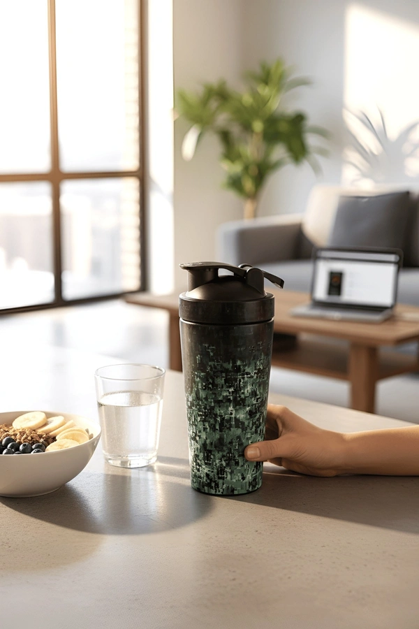 Body Smith Abstract Black Camo Print BPA-Free Stainless Steel Shaker - 750ML