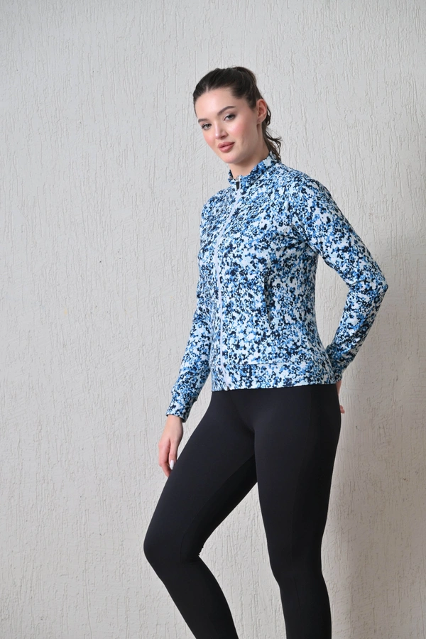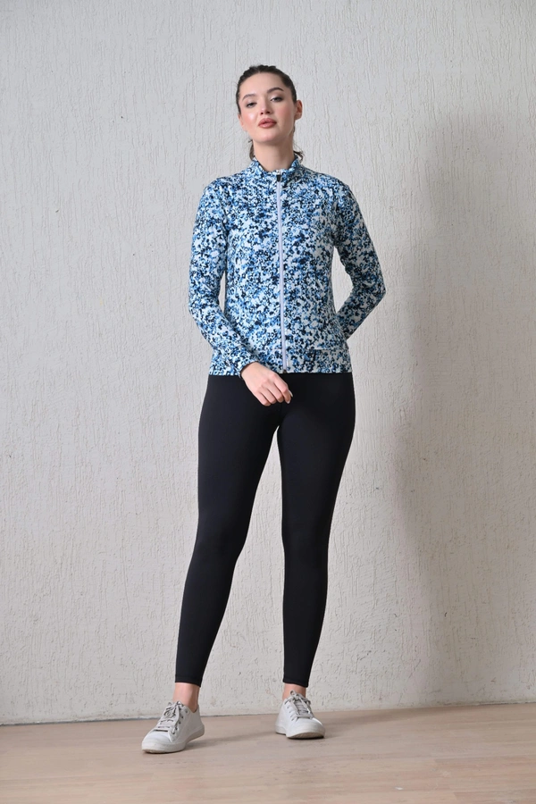 Body Smith Women Solid Full Sleeves Abstract Blue Print Zipper Jacket