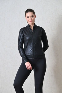 Elevate Your Style with the Body Smith Women Solid Full Sleeves Black Print Zipper Jacket