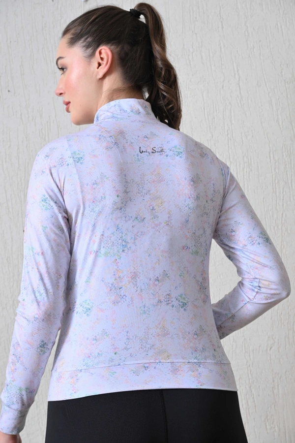 Body Smith Women Solid Full Sleeves Print Abstract White Zipper Jacket